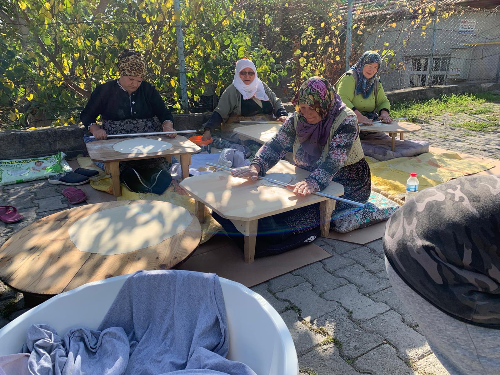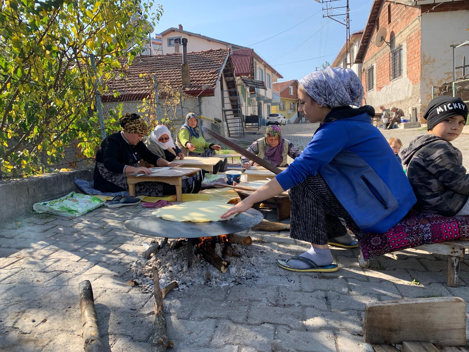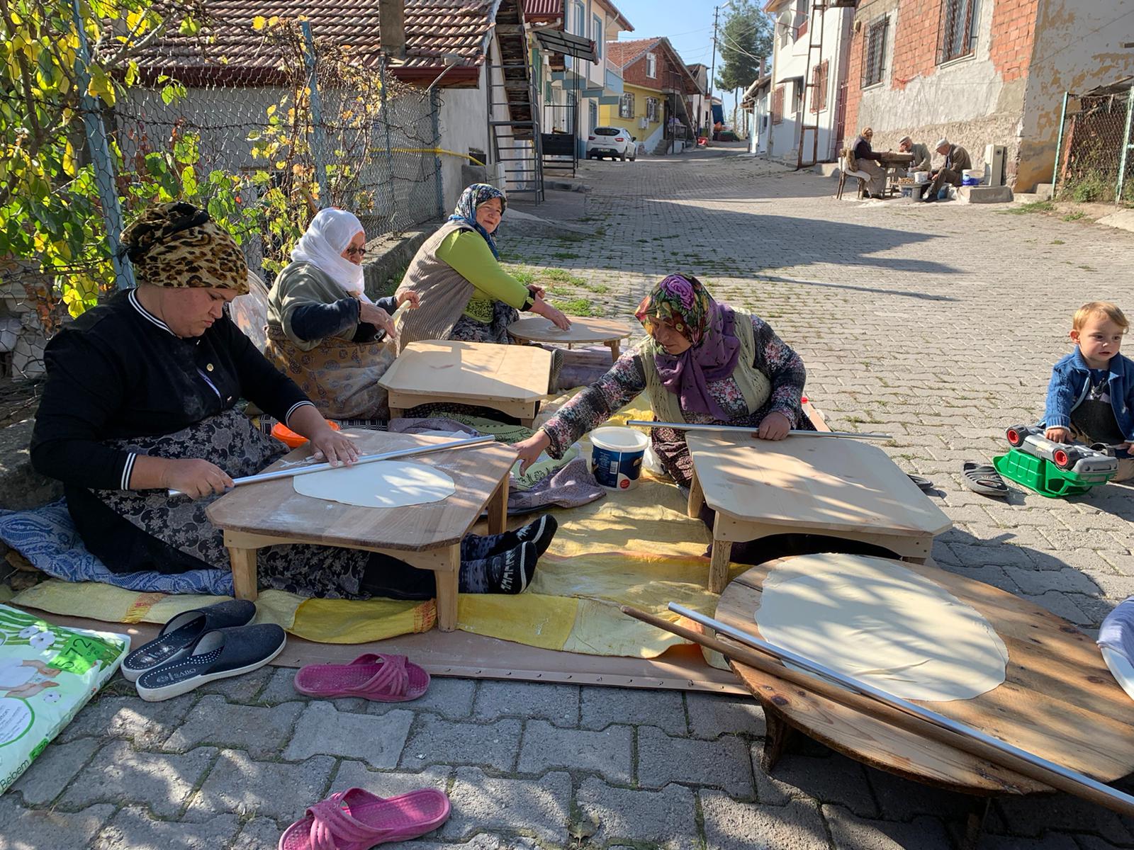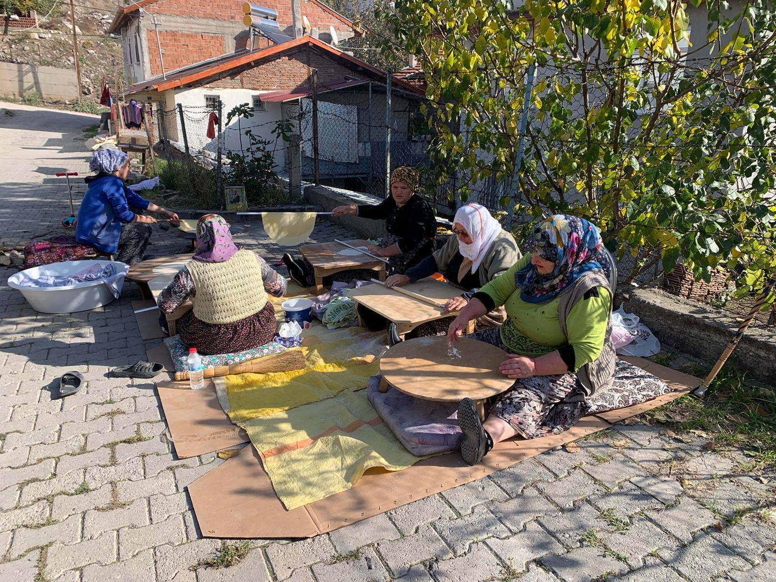 İsmetpaşa Mahallesi'nde kadınlar bir araya gelerek, kışlık yufka yapmaya başladı.