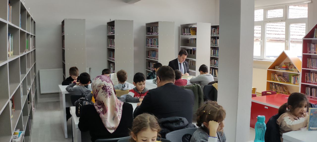 Proje kapsamında Oğuzlar Belediye Başkanı Muzaffer Yıldırım, Oğuzlar ilkokulu 2-B sınıfıyla birlikte kütüphanede kitap okudu.