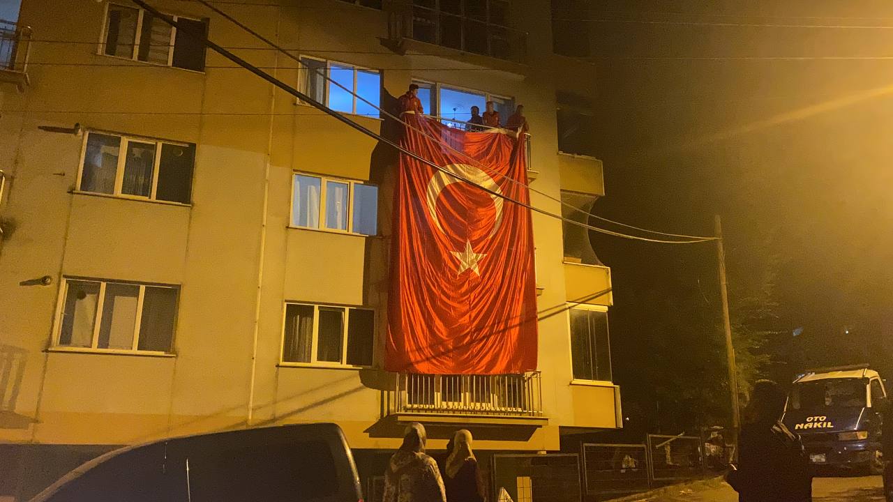 Şehidin evine ve baba ocağına Türk bayrağı asıldı.