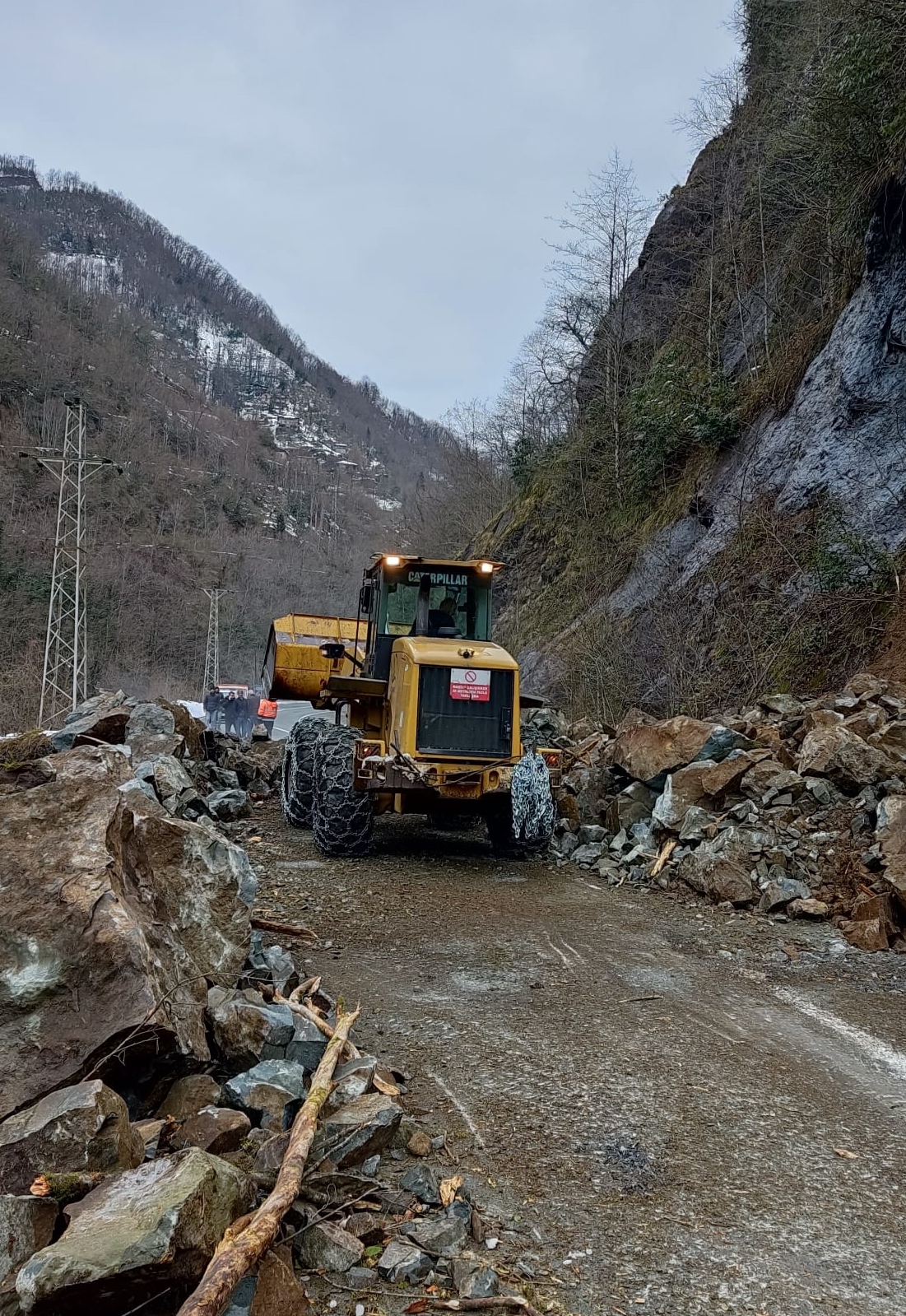 Karayolları ekipleri sürücüleri, bölgede kaya düşme riskinin devam etmesi sebebiyle çalışma tamamlanıncaya kadar alternatif güzergahı kullanmaları konusunda uyardı.