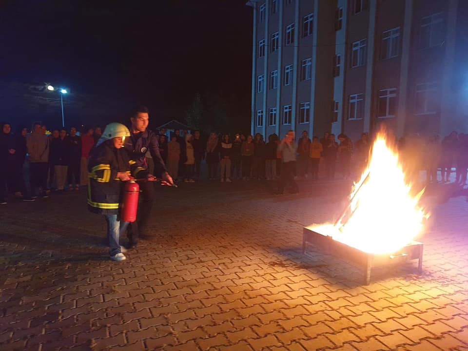 Taşköprü Belediyesi İtfaiye ekiplerince, Sevim Tokatlı Mesleki ve Teknik Anadolu Lisesi pansiyonunda yapılan tatbikatta senaryo gereği yakılan ateş söndürüldü, öğrenciler kurtarıldı.