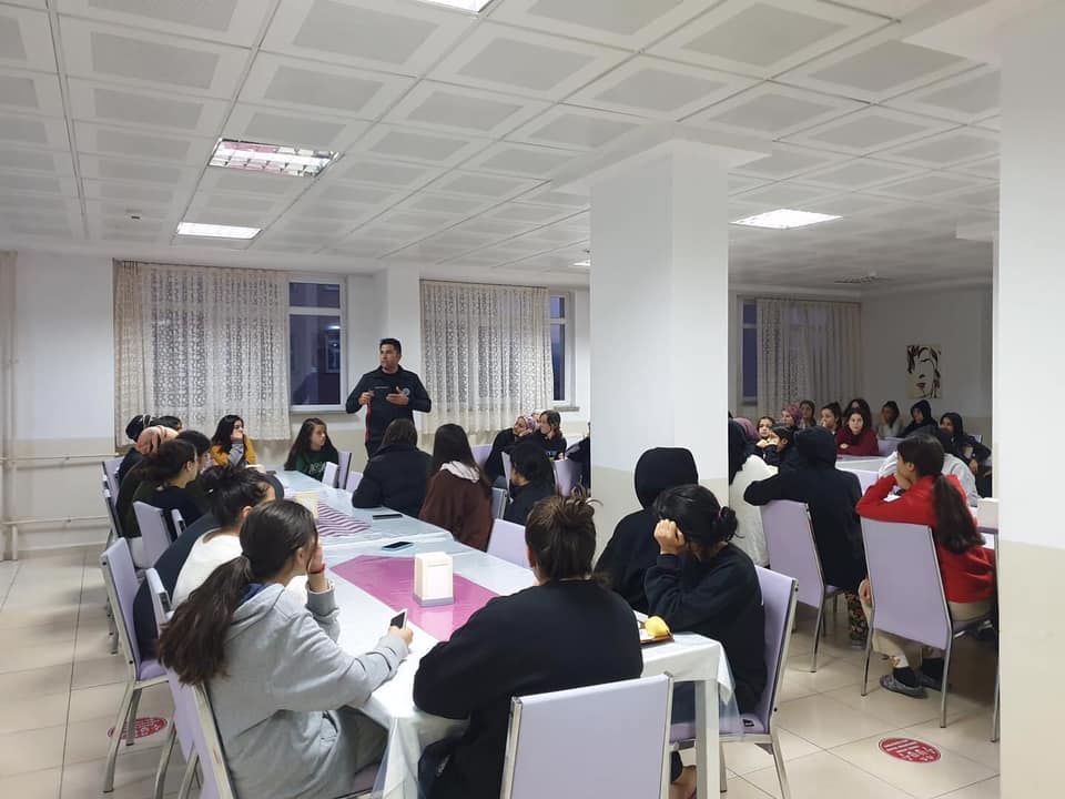 İtfaiye Müdürü Uğur Karaduman tarafından öğrencilere deprem ve yangınlarda alınacak tedbirler hakkında bilgi verdi.