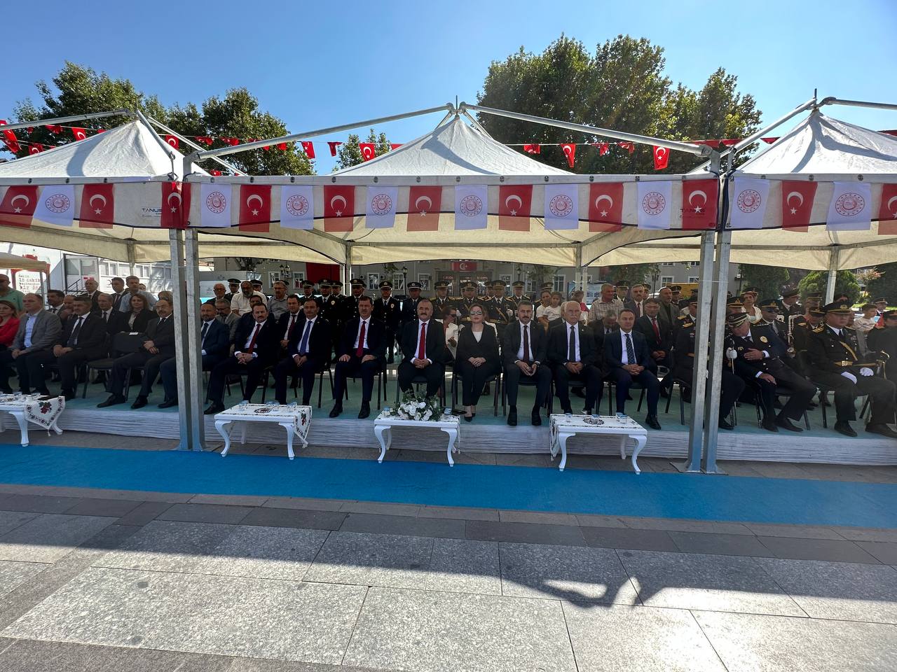 Törene, Kaymakam Murathan Cebeci, Belediye Başkanı Muhsin Yılmaz, İlçe Jandarma Komutanı Jandarma Kıdemli Başçavuş Engin Şentaş, İlçe Emniyet Amiri Eren Aydoğmuş, daire ve kurum amirleri, MHP İlçe Başkanı Ahmet Turan Aydoğan, gaziler ve askeri erkan katıldı
