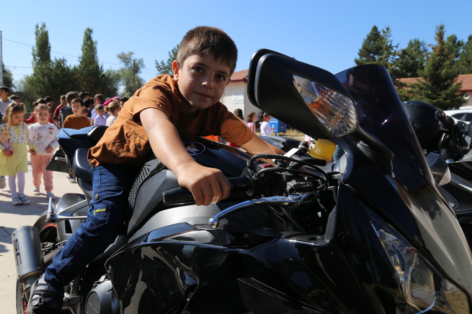 Çocuklar etkinlikte motosikletler ile jandarma ve polis araçlarını yakından inceledi.