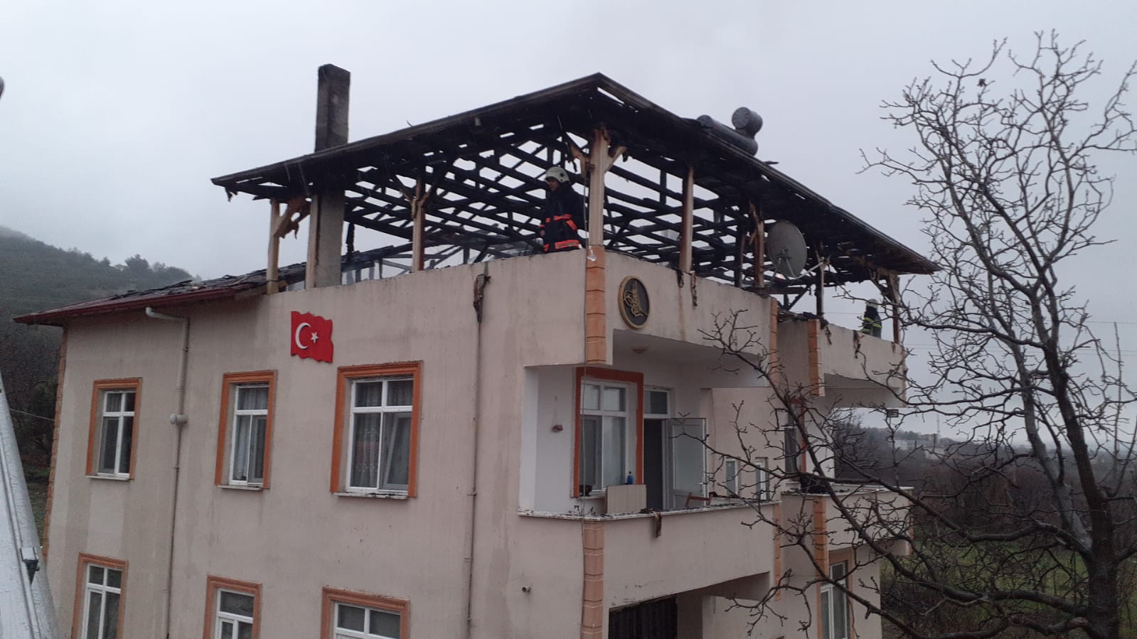 İlçeye bağlı Ballıbağ köyünde Davut Uzun'a ait iki katlı evin çatısında çıkan yangın, itfaiye ekiplerince söndürüldü.