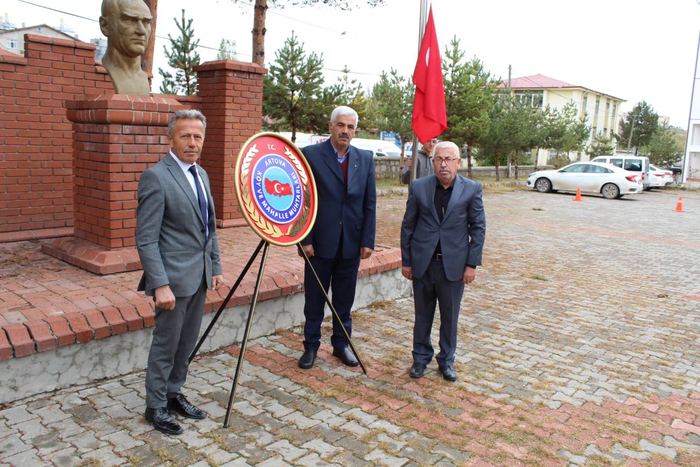 Artova ilçesinde 19 Ekim Muhtarlar Günü dolayısıyla İstasyon Mahallesi Muhtarı Halil İbrahim Erden, Hükümet Konağı önündeki Atatürk Anıtı'na çelenk bıraktı.