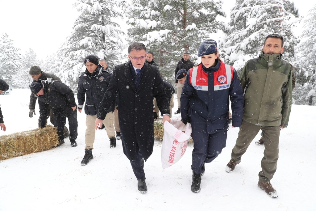 TOKAT (AA) – Tokat'ta yoğun kar yağışı nedeniyle yiyecek bulmakta zorlanan yaban hayvanları için doğaya yem bırakıldı.