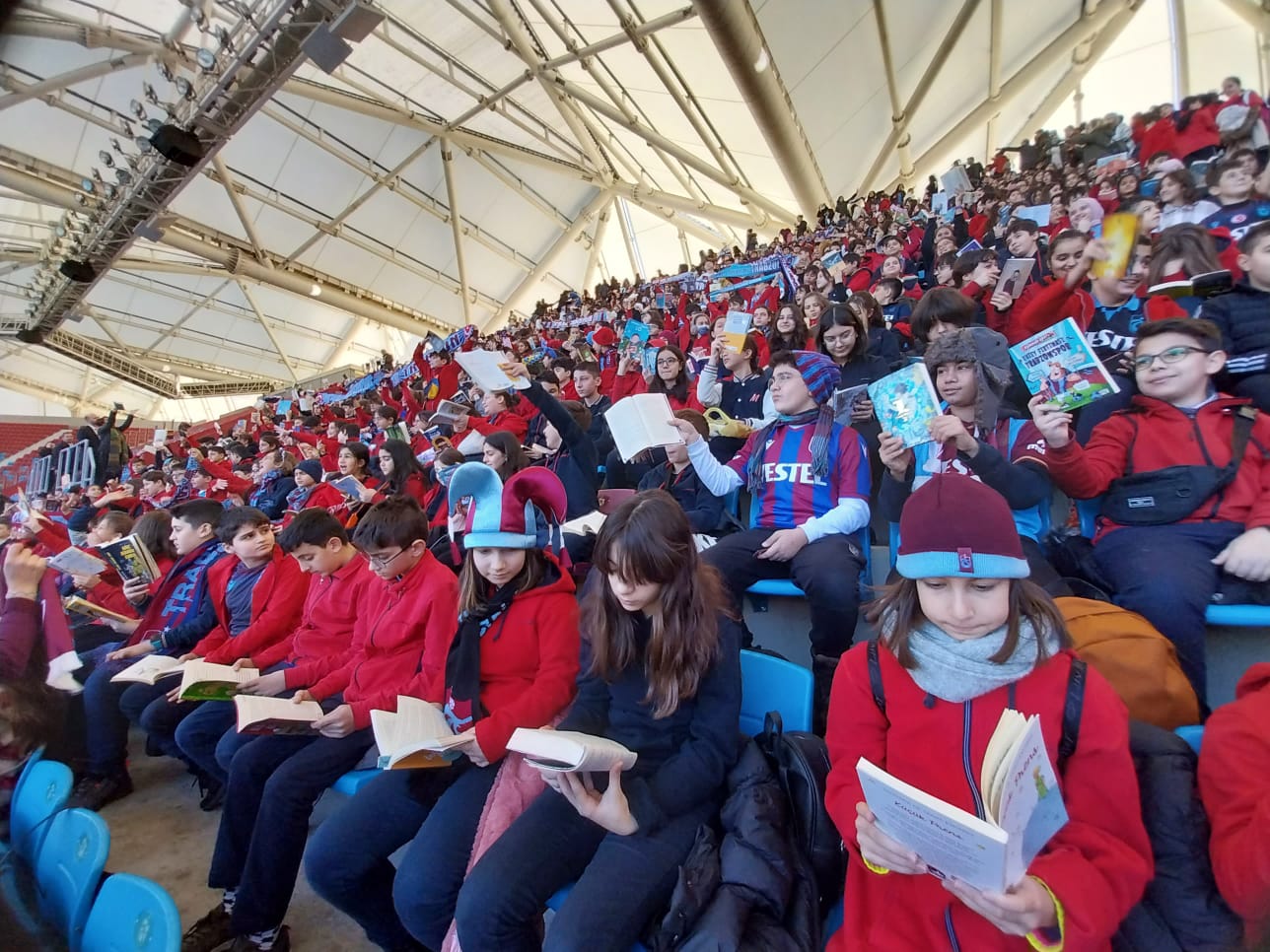 İl Milli Eğitim Müdürlüğü ile Trabzonspor iş birliğinde Akyazı Stadı'nda organize edilen programda, Mehmet Akif Ersoy Ortaokulundan 1461 öğrenci tribünlerde kitap okudu.