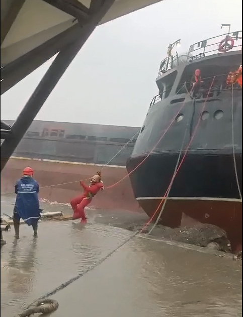 – Limanda ikiye bölünen diğer bir geminin personelinin tahliyesi ise kameralarca kaydedildi
