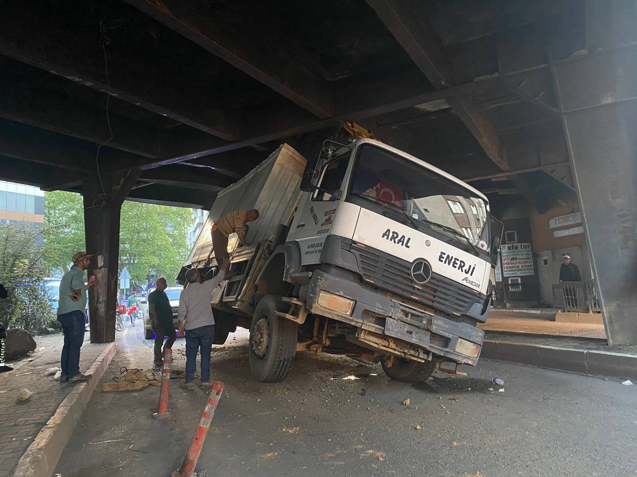 Kent merkezinden Ankara yönüne giden, A.Ş'nin kullandığı 52 ACC 519 plakalı konteyner taşıyan tır, Fevkani Köprüsü'nün altından geçerken sıkıştı.