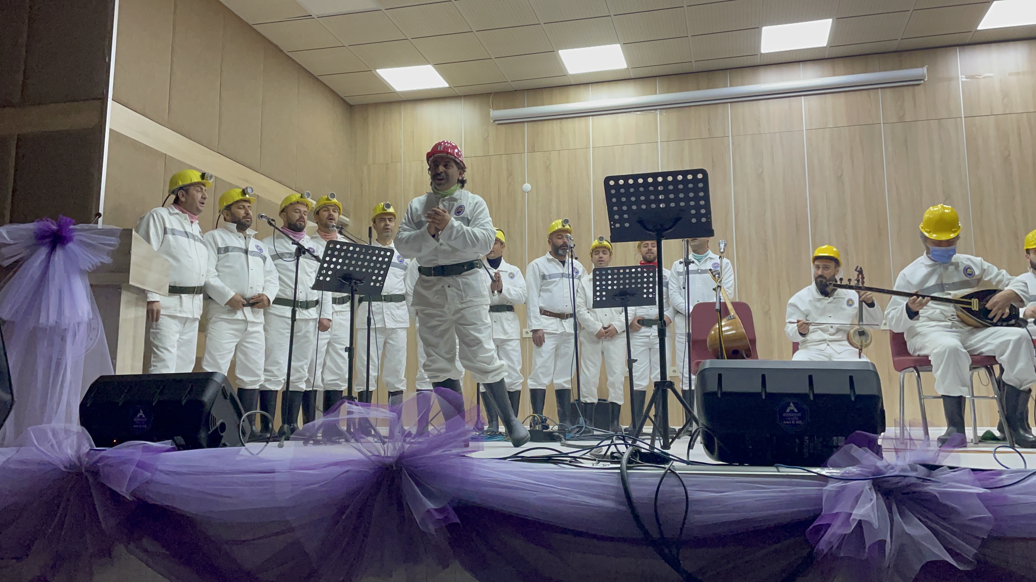 ZONGULDAK (AA) – Zonguldak'ta “kara elmas” olarak adlandırılan taş kömürünü yeryüzüne çıkarmak için alın teri döken maden işçilerinden oluşan ve Türkiye'de ilk olma özelliği taşıyan “Madenci Korosu”, 8 Mart Dünya Kadınlar Günü dolayısıyla konser verdi.
