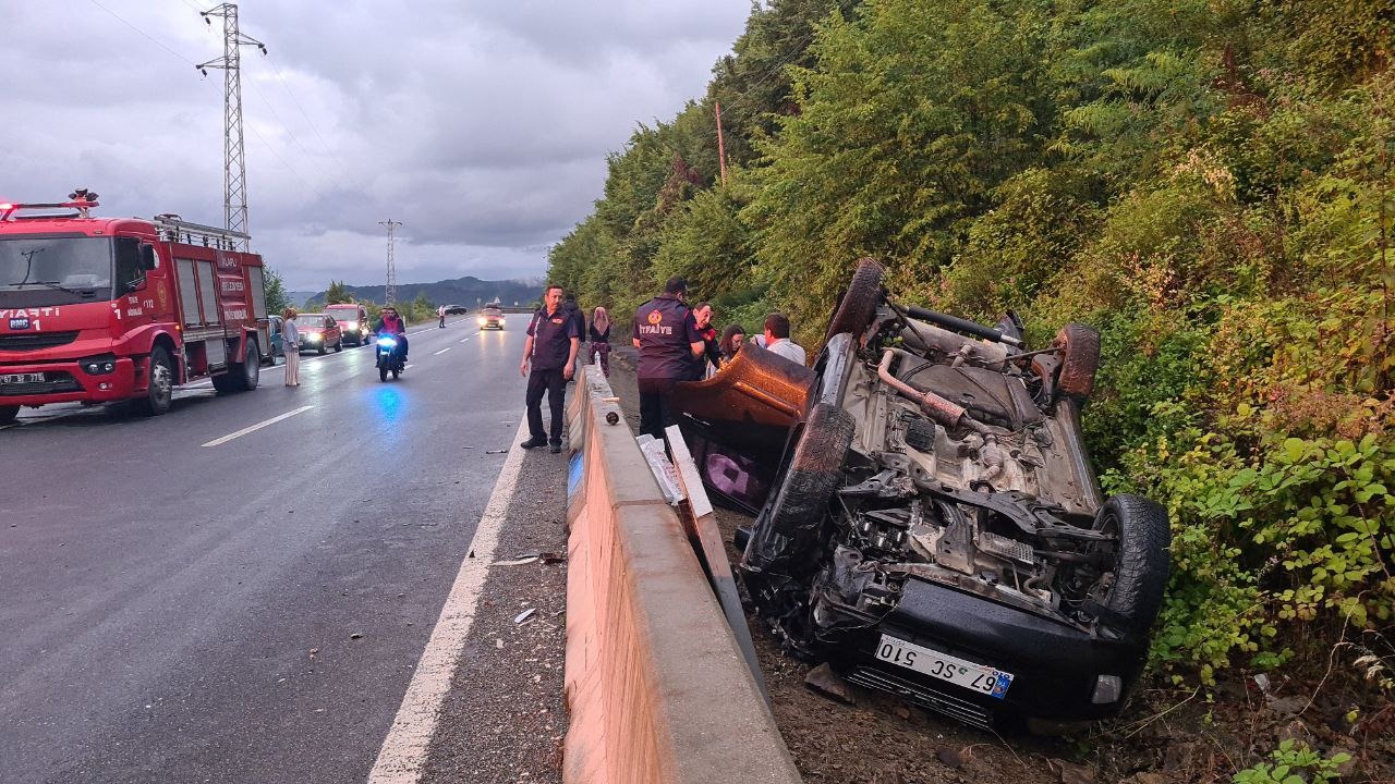 Alaplı’dan Düzce’nin Akçakoca ilçesi istikametine seyreden Ş.D. idaresindeki 67 SC 510 plakalı otomobil, Kocaman mevkisinde bariyere çarparak takla attı.