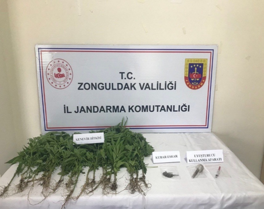 Operasyonlarda, 156 kök kenevir, 103 gram kubar esrar ve uyuşturucu kullanma aparatı ele geçirildi.