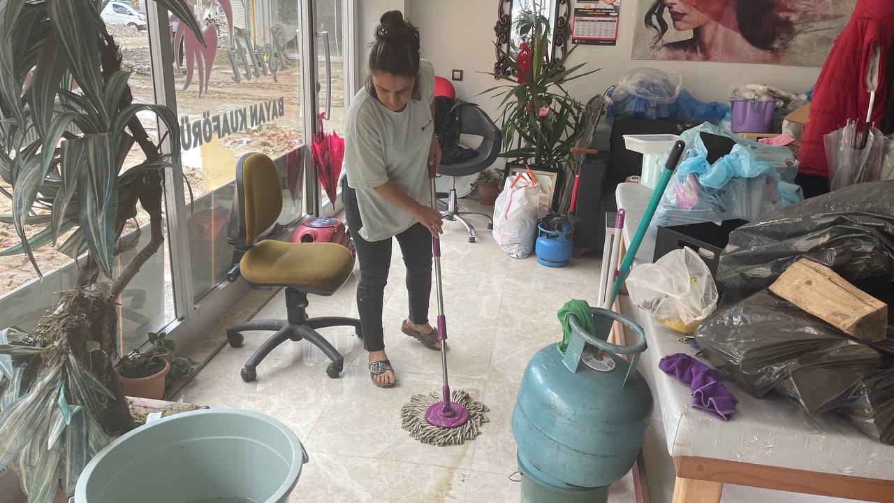 ZONGULDAK (AA) – Zonguldak'ta sağanağın ardından yaşanan selde iş yerinde mahsur kalan kadın, yaşadığı korkuyu atlatmaya çalışıyor.