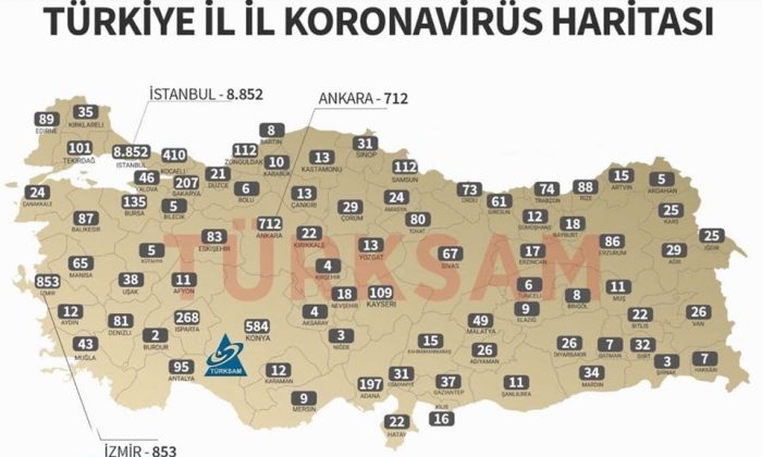 “Bütün illerimizde artık bu virüsün olduğunu biliyoruz. O nedenle açıklamakta bir sakınca olmadığını düşünüyoruz. Burada görülen ön planda daha çok vakanın İstanbul olduğunu görüyoruz. İstanbul’daki vaka sayısı 8 bin 852, yüzde 60’lara yakın. Onu İzmir izliyor, 853 vaka, onu 712 vakayla Ankara, 584 vakayla Konya, 410 vakayla Kocaeli izliyor. En çok vaka görülen iller, İstanbul, İzmir, Ankara, Konya, Kocaeli, Isparta, Sakarya, Adana, Bursa ve Samsun.”